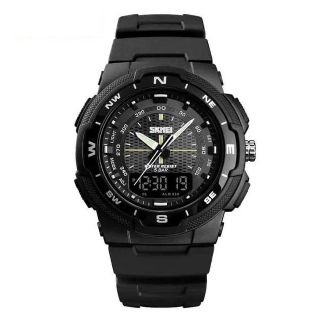 If you are looking for a tough sporty watch that give both style and function, then SKMEI 1454 Dual Time Men's Watch is a solid option for you. This watch is built for men who like outdoor activity, travel, sports or even just daily casual wear. The design look bold and modern, with dual time display that makes it very handy if you move between places or need check two timezone at once. The strap is made from soft silicon material, so it feel light and comfy on wrist, not heavy even if wear whole day. Its body design also look very strong, not fragile type, so you can trust it for rough use. The digital and analog display together make it unique – you can see time fast and also get that stylish sporty vibe. It’s not only about look, but also about function, since it come with features like alarm, stopwatch, and backlight, so you always ready for work, gym, or outdoor trips. The waterproof build give you confidence in rain or swimming, so you don’t need to worry water damage. Whether you wear with sporty outfit or casual dress, this watch fit well, make you look active and energetic. Many people like it because it’s affordable but still premium feel, so you don’t spend too much money but still get stylish watch that last long. For men who want one watch that cover both daily lifestyle and sporty adventure, SKMEI 1454 is one of the best choice available.