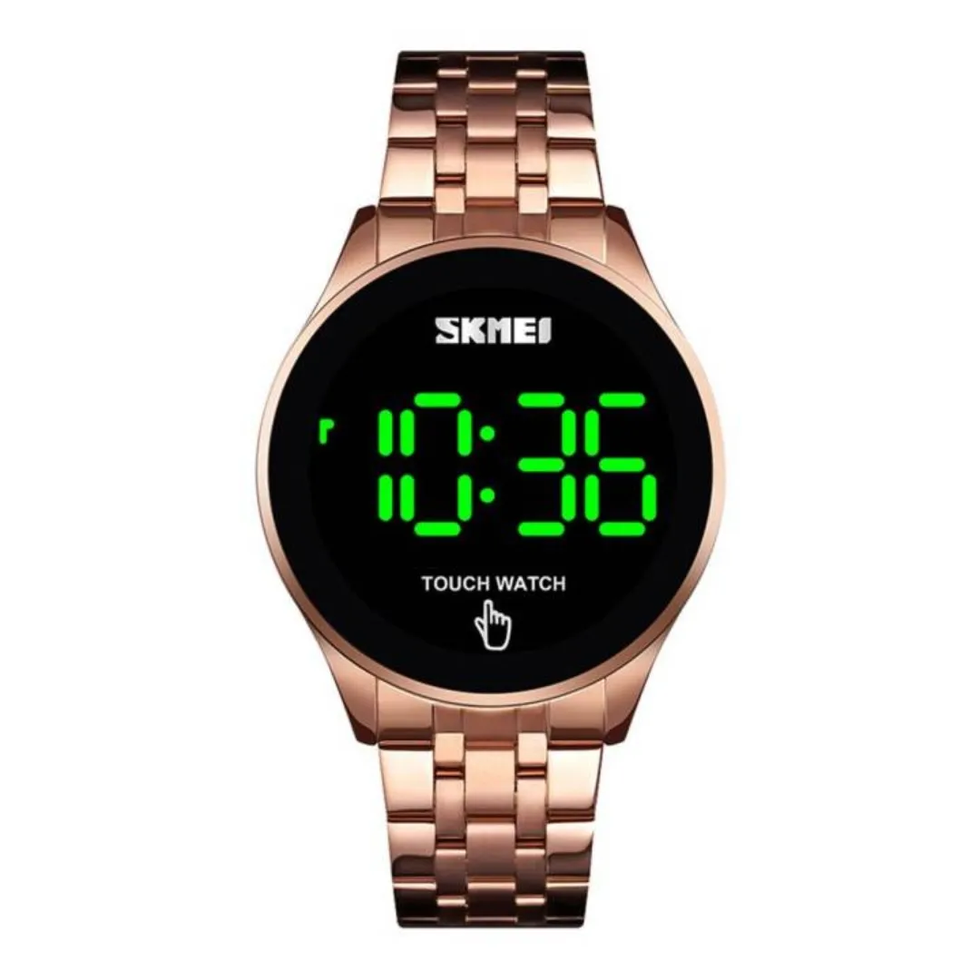 SKMEI 1579 Led Touch Screen Digital Man's Watch – Dial Color: Black, Strap Color: Rose – View 1