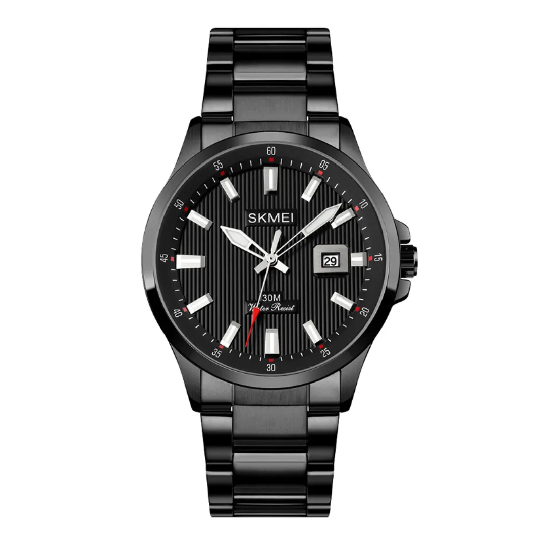 SKMEI 1654 Luxury Stainless Steel Relojes Para Hombre Men's Watch – Dial Color: Black, Strap Color: Black – View 1