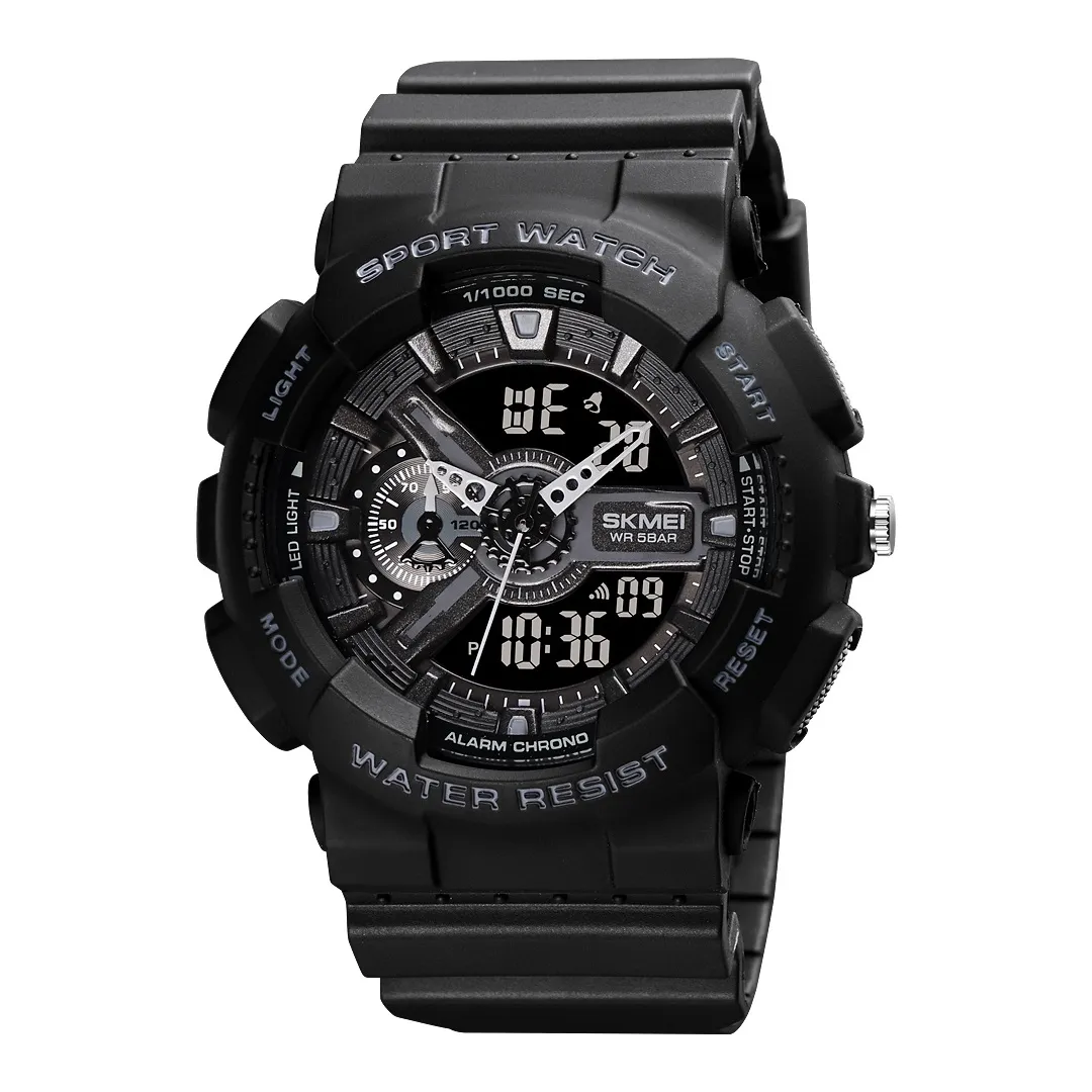 The SKMEI 1688 Fashion Sport Men's Watch is a stylish and tough timepiece made for men who want both fashion and function in one design. It comes with a modern analog and digital dual display, giving you the best of both classic look and smart convenience. This watch is built with a durable rubber strap that feels light on the wrist yet strong enough to handle everyday wear, whether you are at work, playing sports, or enjoying outdoor activities. The dial is bold and easy to read, with clear markers and a digital display that show time, date, alarm, and stopwatch function. Its waterproof design makes it suitable for swimming, showering, or casual water activities without worry. Many users like it for its reliable performance, as it keeps accurate time and offers multiple features normally seen in higher-priced watches. The fashionable sporty design also makes it perfect for both casual and semi-formal outfits, so you don’t need a separate watch for different occasions. Whether you want to track time while exercising, set an alarm for your schedule, or just wear something stylish on your wrist, the SKMEI 1688 is a solid choice that delivers in all areas. It is also a great gift option for friends or family, thanks to its versatile style and budget-friendly price. Overall, this watch is for men who value durability, modern features, and a look that matches an active lifestyle.