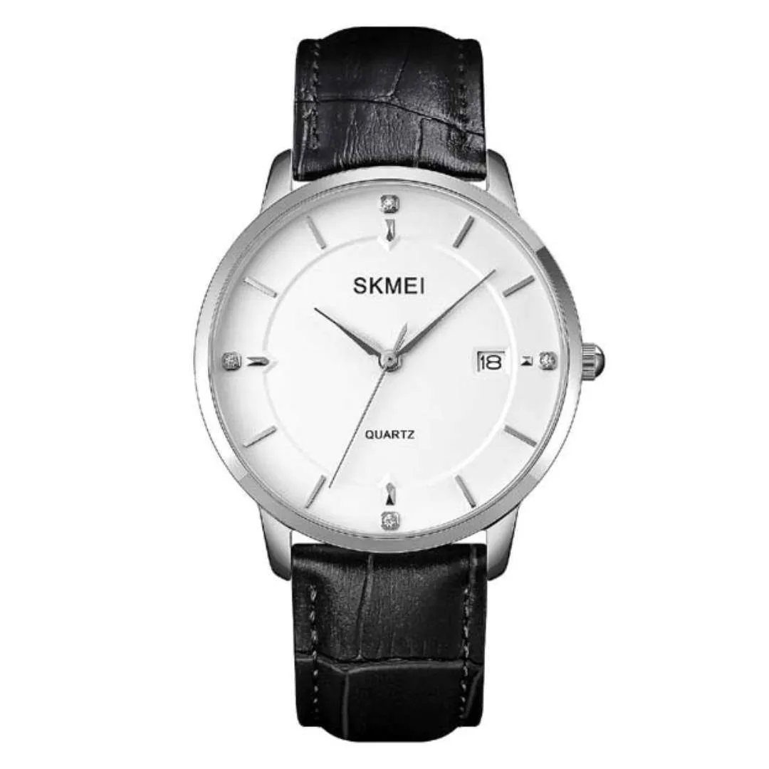 SKMEI 1801 Business Calendar Leather Strap Classic Quartz Watch – Dial Color: White, Strap Color: Black – View 1