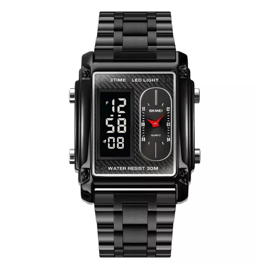 If you are searching for a wrist watch that mix both digital and analog style, then SKMEI 1868 Men's Watch is a very good option. This watch is made for men who like strong looking design but also want daily usability. The body of this watch is bold and sporty, perfect for casual wear, office, or outdoor use. It show both analog hands and digital time display, so you get two formats in one device. Display is clear, numbers are easy to read even in low light because it comes with LED backlight function. It also has multiple useful features like alarm, stopwatch, and dual time, so you can manage more than one time zone at once. The strap is built from high quality PU material, soft but durable for long use. Case is shock resistant, making it suitable for travel, gym, or even sports activities. With water resistance up to 50 meters, you don’t need to worry if it gets wet during rain or while washing hands. Overall, this is not just a watch but also a practical companion for men who want tough design and everyday features at one place.