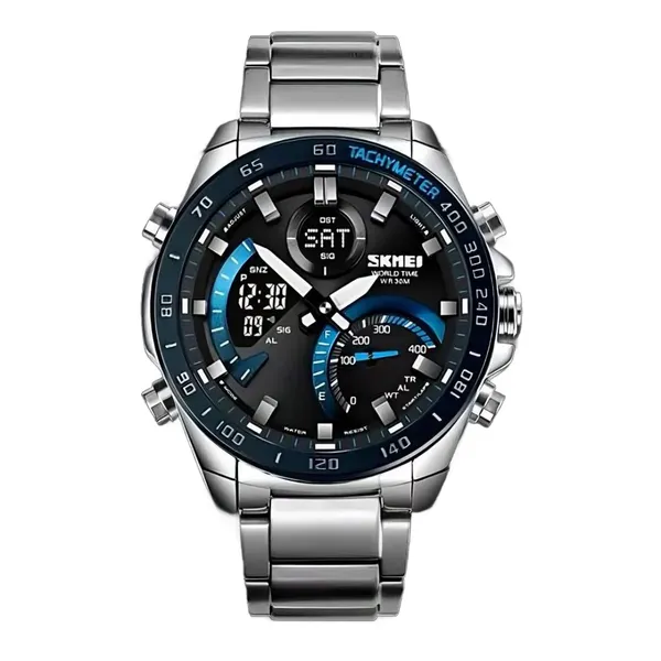 If you want a stylish wrist watch that mixes both classic look and modern feature, then the Skmei 1889 Men's Watch is a really great choice. This watch is built with stainless steel body and strap, so it give you strong feel and also premium look on wrist. It got both analog and digital display, which make it very useful – you can check time in classic needle style or digital screen. This dual display also come handy when you travel or busy in work, because it show time clear in any condition. The design is bold yet classy, so it match with both formal shirt and casual dress. The stainless steel strap feel solid and don’t get loose easily, and buckle lock keep it safe in hand. It also resist scratch to some level, so daily use not make it look old fast. The dial is designed in a way that give you both fashion and comfort, not too big and not too small, so it suit most hand sizes. Inside the watch you also get features like chronograph, alarm, and backlight, which make it much more than normal watch. Whether you wear in office meeting, evening outing, or sports time, this Skmei 1889 give you confidence. It’s stylish, it’s practical, and it’s affordable, so for men who want one watch for all purpose, this one is very good option.