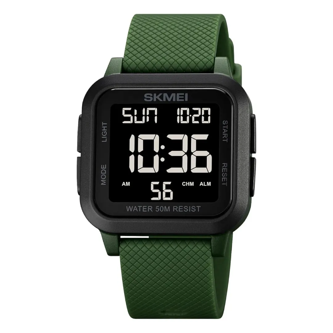SKMEI 1894 Multifunction Waterproof Sport Digital LED Men's Watch – Dial Color: Black, Strap Color: Green  – View 1