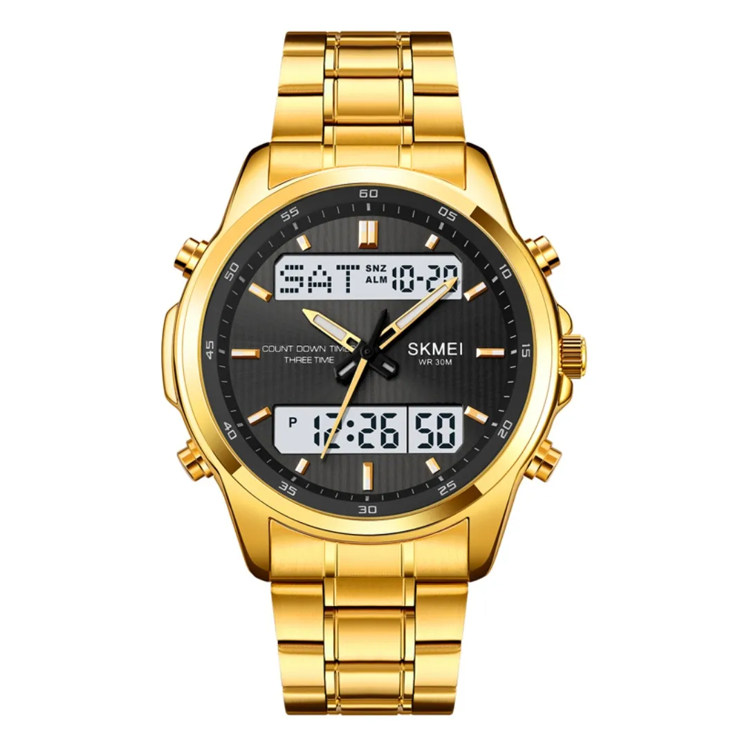 Skmei 2049 Analog Digital Dual Display Men's Watch – Dial Color: Black, Strap Color: Gold  – View 1