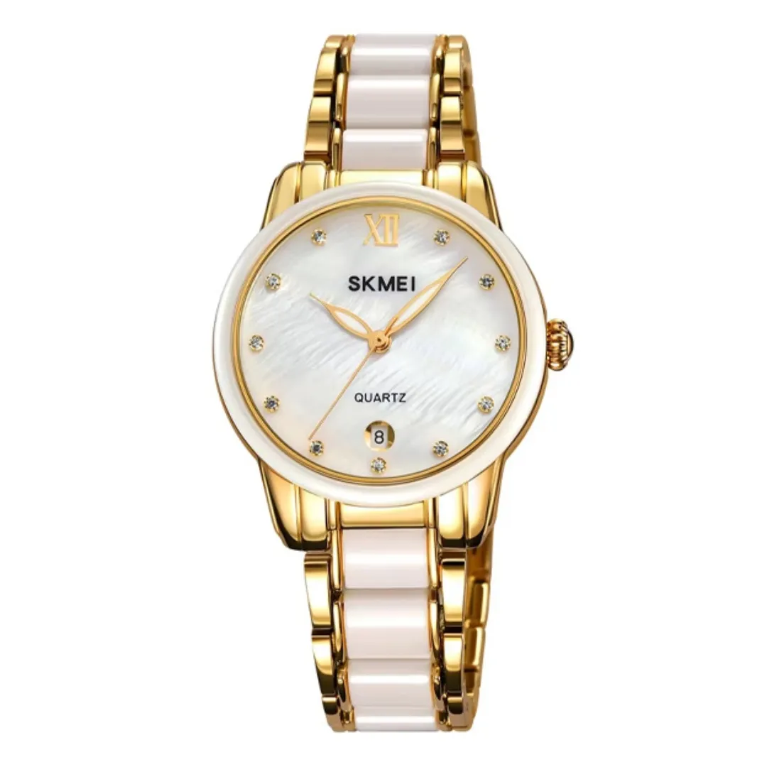 Skmei 2175 Elegant Rhinestone Dial Stainless Steel Women's Watch – Dial Color: Silver, Strap Color: Gold – View 1