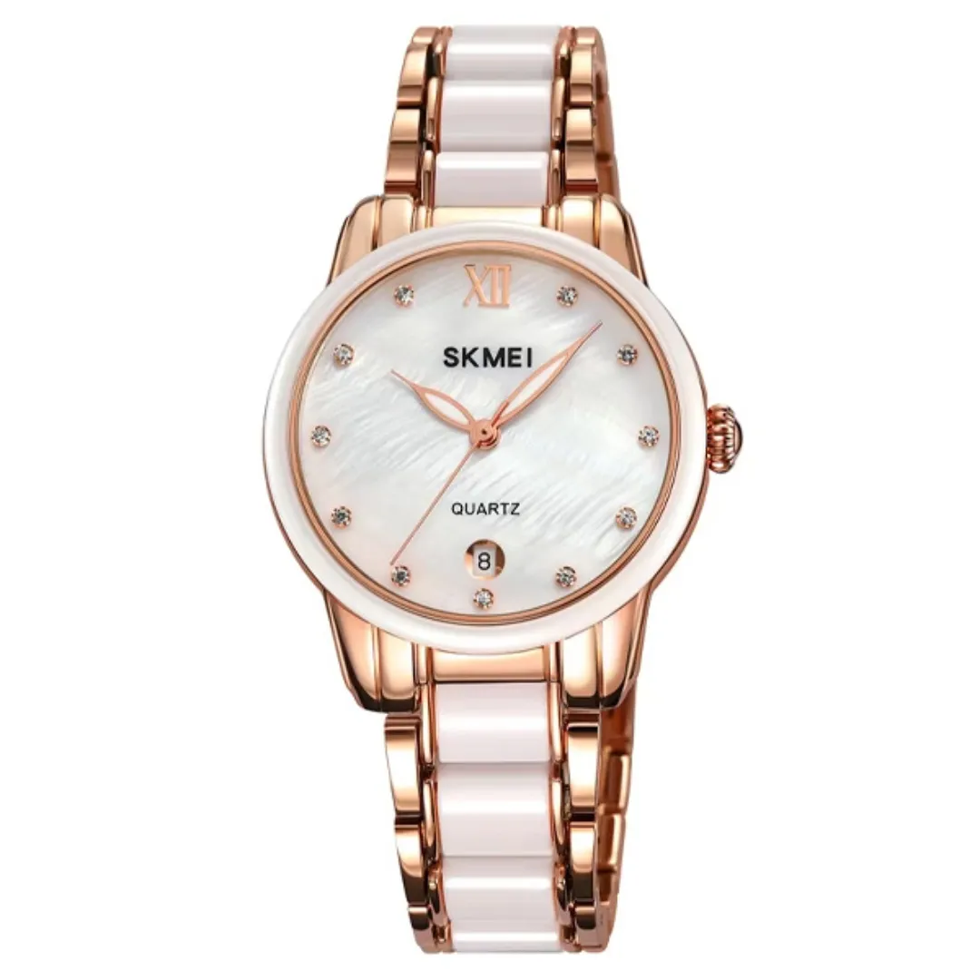 The Skmei 2175 Women's Watch is a very stylish and graceful wrist watch made for women who love to wear something classy but also modern at the same time. The main charm of this watch is the shiny rhinestone-decorated dial that give it very beautiful and premium look. When you wear it, the stones sparkle with light and make your hand look more attractive. The stainless steel strap is strong but also slim and elegant so it feel light on wrist and not heavy for daily use. You can wear this watch in office, in party, in family event, or even in casual outing and it will match with all dress. The round dial is designed in a very neat way so time is easy to see and the glass cover protect it from scratch. This watch give you perfect balance of fashion and durability because Skmei brand always focus on both style and quality. The elegant design make it also a good gift choice for birthday, anniversary or special occasion. It is not just for showing time, but it is a piece of jewelry that add extra charm in your look.