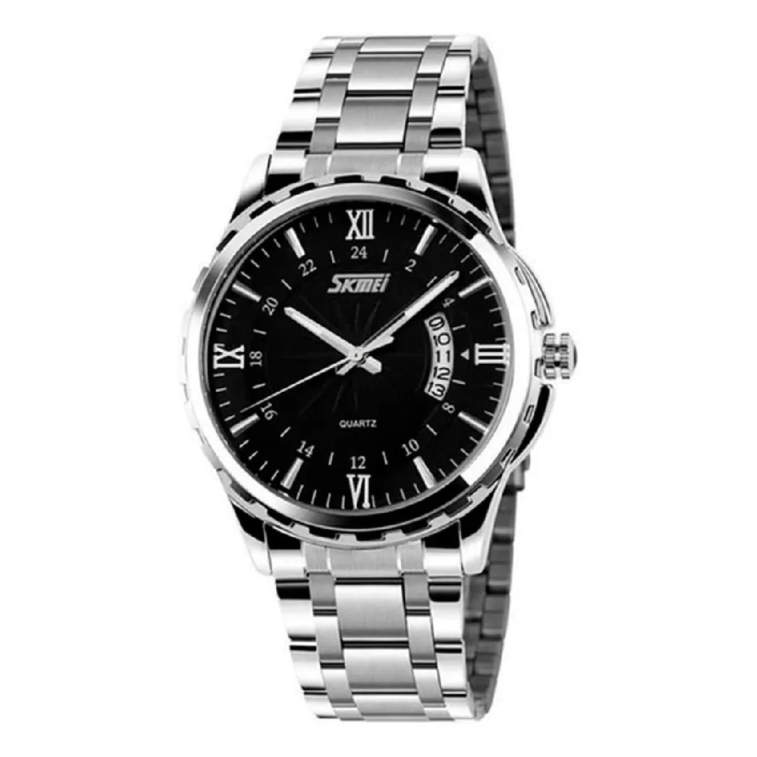 The Skmei 9069 Men's Watch is a stylish men’s watch made with a full stainless steel body that givesa classy look and is also strong for daily wear. The design is simple but also modern, so you can wear in office, party, casual outing or even travel. The shiny steel strap fit well in the hand and feels comfortable after long time use. The round dial look very elegant with clear markers, so time reading is very easy. Inside it uses quartz movement, that mean time keeping is accurate and reliable for long time. This watch also water resistant so no worry for light rain, hand wash or daily splash. Many people like this model because it balance between fashion and durability in one watch. It not feel too heavy, also not too light, perfect size for most men wrist. The stainless steel strap and strong case make it long lasting, so you can use for many years without problem. Wearing this watch give smart personality and show good taste. It is not only time timepiece but also a style accessory for a man who want to look confident. Skmei brand also well known for affordable and durable watches, so this model is a trusted choice.