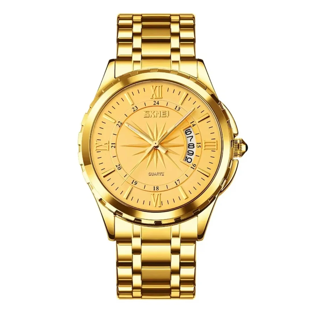 Skmei 9069 Stainless Steel Waterproof Quartz Men's Watch – Dial Color: Gold, Strap Color: Gold  – View 1