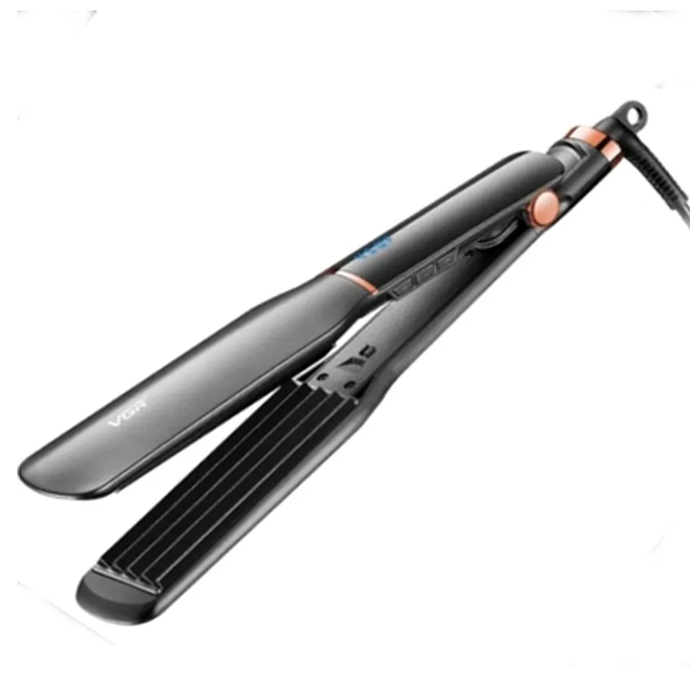 VGR V-519C Professional Hair Crimper with the color of shiny white. This cutting-edge hair crimper is meticulously crafted with advanced features to give you salon-quality results in the comfort of your own home. You can achieve flawless salon-like hair at home with ease using this VGR V-519C hair crimper iron style tool. This energy-saving device has a unique 38mm ceramic coating plate and the Ceramic plates allow for delicate and frizz-free crimping. temperature control On/Off switch, a Digital LED Display, and a lockable switch protect the plates from dents and other harm. Automatic safety shutdown after roughly an hour of inactivity. Also, it has a 360-degree swivel cord. This allows you to conveniently rotate the cord and avoid unnecessary tangles because of its features.